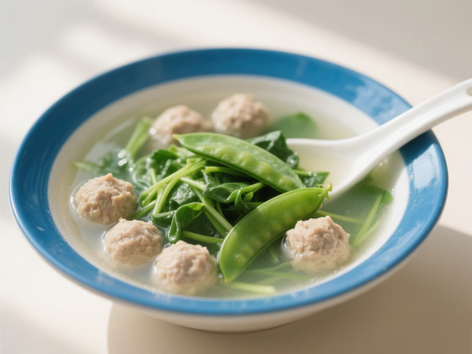 • 锅中加水煮沸,放入肉丸子煮 3 分钟。