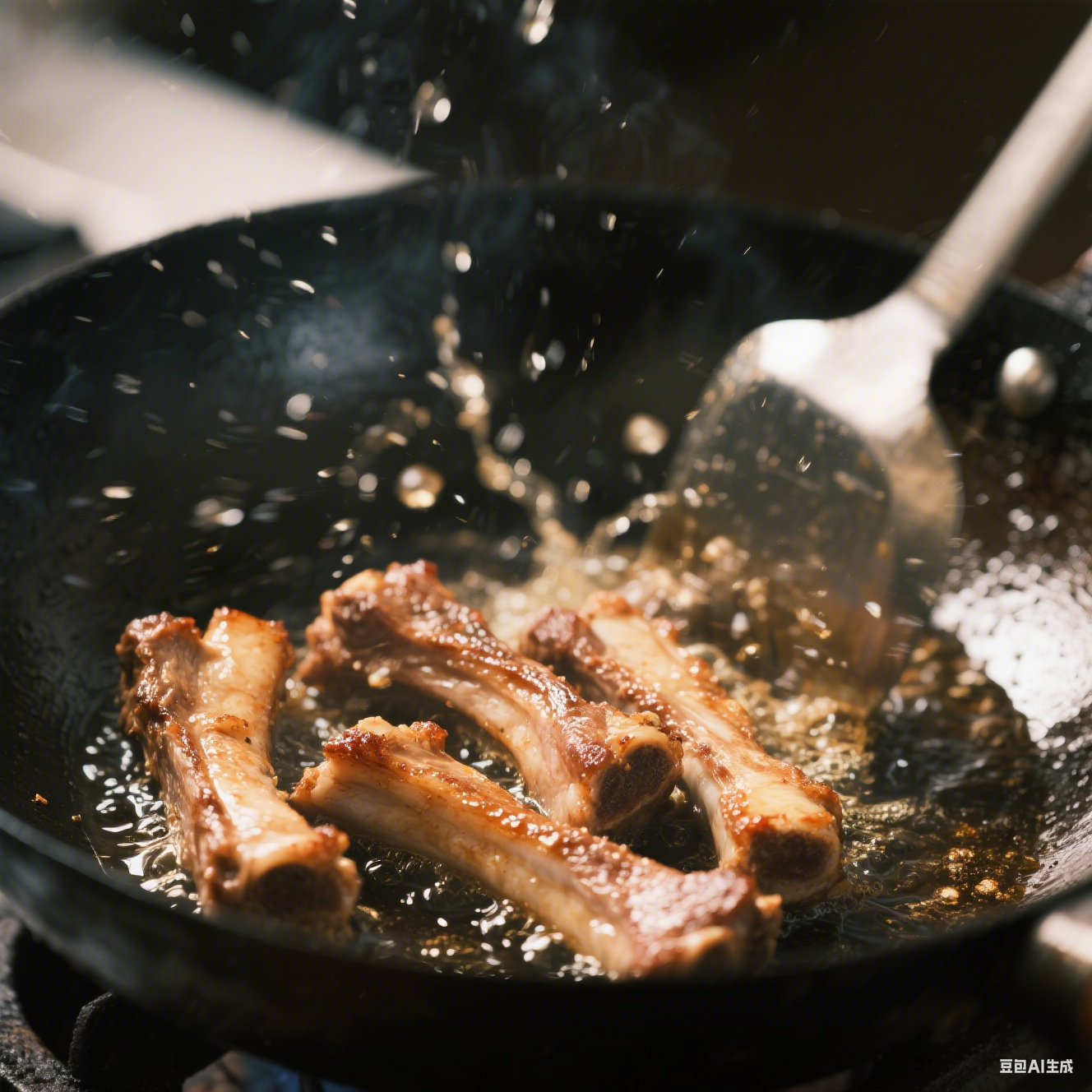 - 烹饪调味:倒入煮好的排骨,快速翻炒,让每一块排骨都均匀裹上糖色。接着加入生抽、老抽、香醋、料酒,继续翻炒均匀,使排骨充分吸收调料的味道。然后加入适量炖煮排骨的原汤,没过排骨,大火烧开后转小火焖煮 10 分钟。